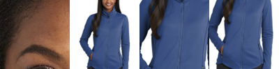 - 100% polyester knit bonded to a water-resistant film insert and a 100% polyester microfleece lining at side panels and under arms
